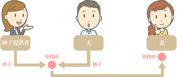 卵子提供者(エッグドナー)の卵子と夫の精子を受精させ、妻の子宮に戻す方法です。
